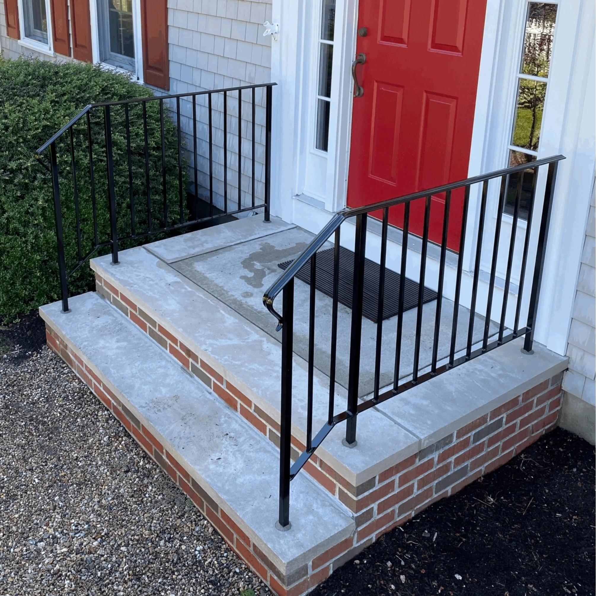 The railings in this photo have straight balusters, molded top rail, and lambs tongue ends.