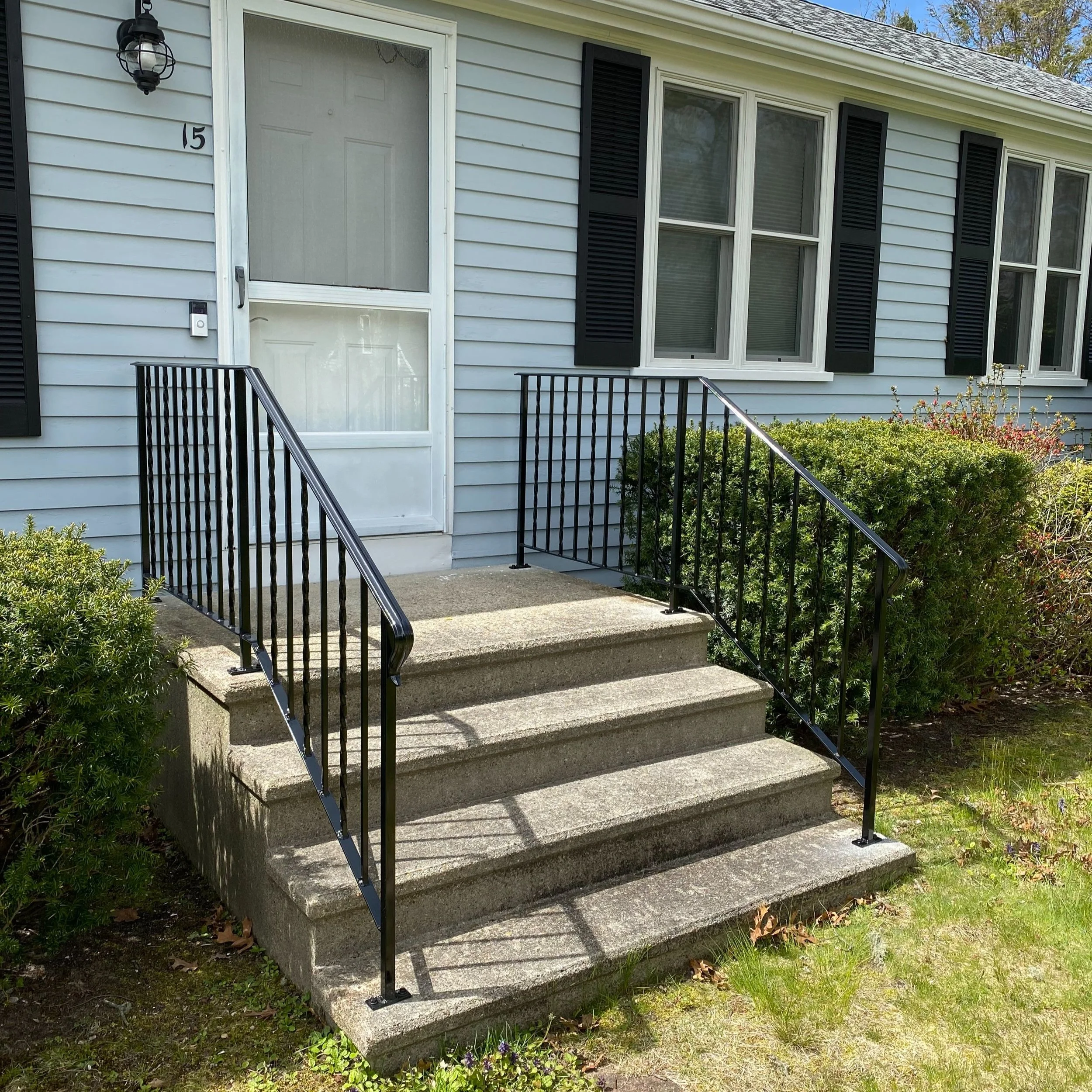 These railings have alternating balusters, molded top rail, and lambs tongue ends.