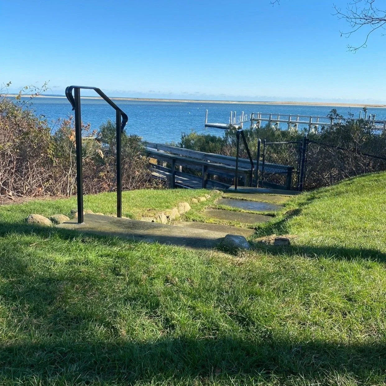 This railing has a molded top rail, lambs tongue ends, and no balusters.